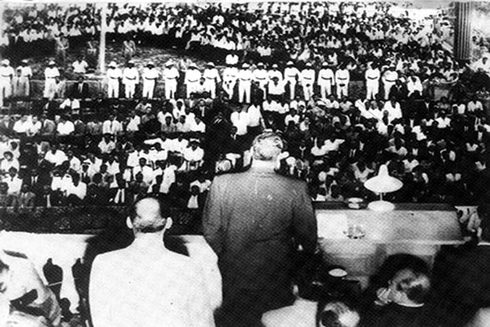 سنتجه قدماً إلى الأمام، نؤيد الحرية ونؤيد التحرير، نقاوم الاستعمار وأعوان الاستعمار. أمامنا - أيها الإخوة - معارك طويلة.. مستمرة؛ من أجل تحقيق المبادئ اللى آمنا بها، واللى آمن بها كل فرد من أبناء هذا الوطن.