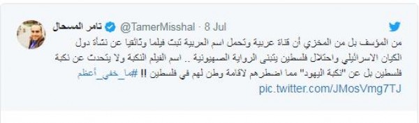 وقال المنتدى في بيان صادر عنه: إن بث قناة (العربية) للفيلم يمثل سقوطاً مدوياً لها، ويميط اللثام عن دورها المشبوه لتشويه وعي الأجيال العربية، وأن ما قامت به القناة لصالح الاحتلال الإسرائيلي، وتطبيع وجوده في المنطقة العربية، متجاهلة عذابات الشعب الفلسطيني الرازح تحت نير الاحتلال منذ عقود، ومتجاوزة حق ملايين الفلسطينيين.