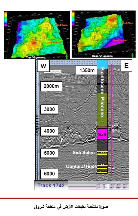 التقرير يوضح، أن طبقات المنطقة تنتمي للصخور الكربونية، وتتراوح الأعماق بها بين “1400 – 1800 م”. لافتًا إلى أنه المنطقة اكُتشف بجوارها مجموعة من الآبار الناجحة هي “KG70-1 ، و LA52، و LA51، وKG45”.