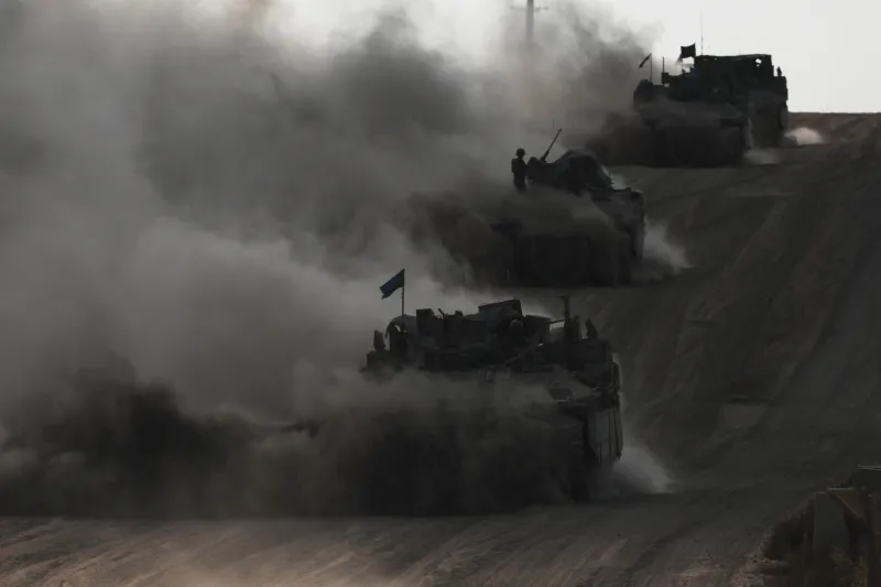 ناقلات جند مدرعة إسرائيلية تعمل بالقرب من حدود إسرائيل مع غزة، مايو 2024